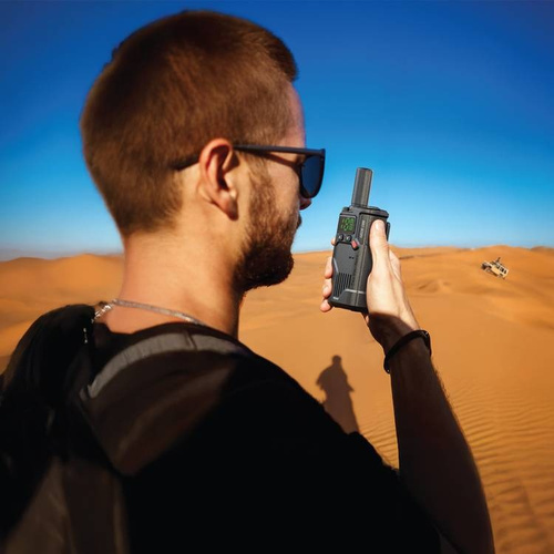یکی از مزایای مهم این مدل داشتن چراغ قوه داخلی (LED Flashlight) است که در تاریکی یا شرایط اضطراری به کمکتان میآید. همچنین امکان VOX (فعالسازی صدا با صدا) وجود دارد که صحبت کردن را بدون فشار دادن دکمه ممکن میکند — مناسب زمانی که هر دو دست مشغول است. سیستم تنظیم هشت سطحی صدا و صفحهنمایش فسفری کمک میکند وضعیت کانال و سیگنال را حتی در نور کم ببینی.