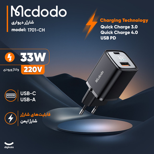شارژر دیواری 33 وات دو پورت مک دودو مدل CH-1701