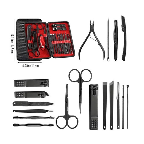 تعداد ابزار۱۸ عدد ابزار مختلف برای مانیکور، پدیکور، مراقبت پوست و گوش