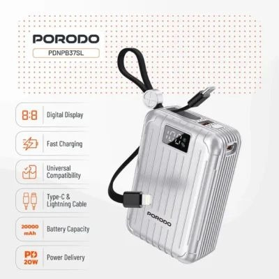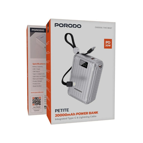 پاوربانک نمایشگر‌دار پرودو پتی 20000 mAh PD 20W — Porodo Petite 20000 mAh PD 20W Power Bank with Display & Built-in Cables